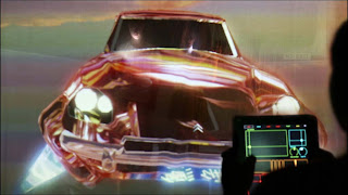 It was one of those things that seemed like it ought to work but really, until we set it up and actually tried it, it was impossible to know it if was going to be convincing enough for the audience to be worth doing. It was a lot of work to get this scene all set up and when we first tried it at the Horsham workshop the scrim we were using was too transparent and the effect totally lost (Below is the extremely lame looking Horsham first take on the whole car thing).