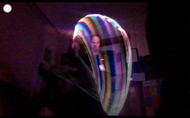 Heres a couple of stils of me experimenting with a kind of real-time light painting idea (these are screen grabs rather than long exposures). The idea is that a camera mounted high in the sculpture will allow people with lights (torches, phones, lighters, whatever) to paint onto the shade sails by running around in the skate park. Meanwhile people operating the sculpture will be able to manipulate this raw material to create even more variety. The idea is that one person on their own should still be able to create something pretty interesting but that mutliple people working as a team will be able to take it to a whole different level.