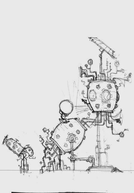 Scribbly sketch of mine inspired by the start Sam had already made on the sculpture (trying to work out how to manage the projector mounted in head concept) |
